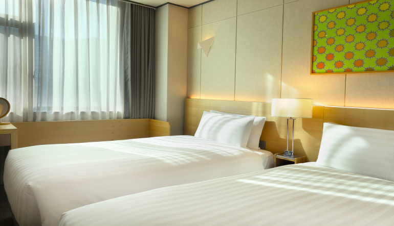 The Deluxe Family Twin Room, featuring a harmonious combination of one double bed and one single bed, offers a practical yet comfortable space for a relaxing stay.